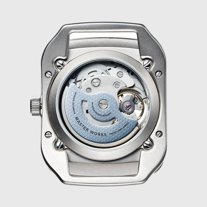 Crafted from premium 316L stainless steel, the case features an original four-piece design.